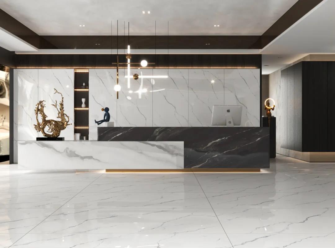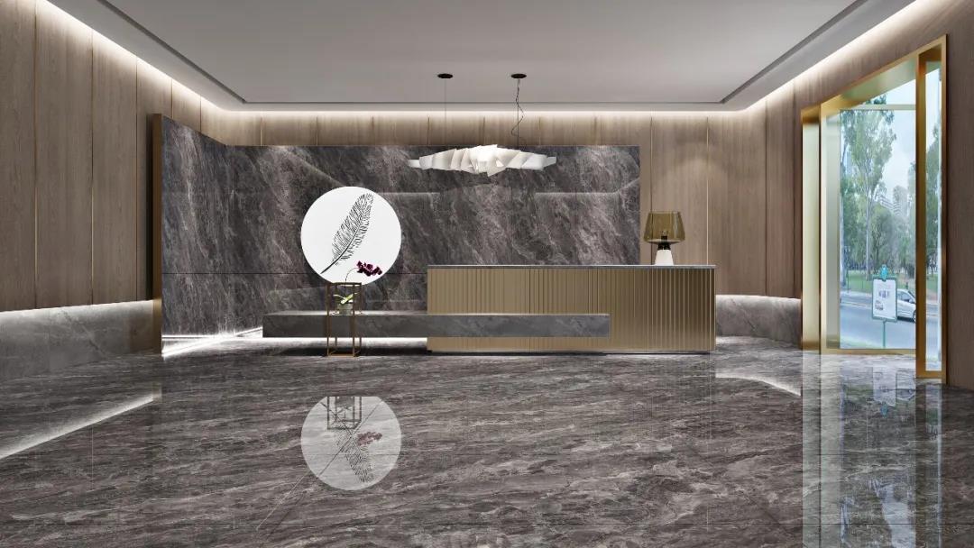 無限連紋設計的巧思在於,通過對大板麵積和線條的延伸,使紋理和視覺得到無限拓展,彰顯空間大氣磅礴氣宇軒昂之勢,讓自然之美的展現,不再受到單片瓷磚規格的局限。