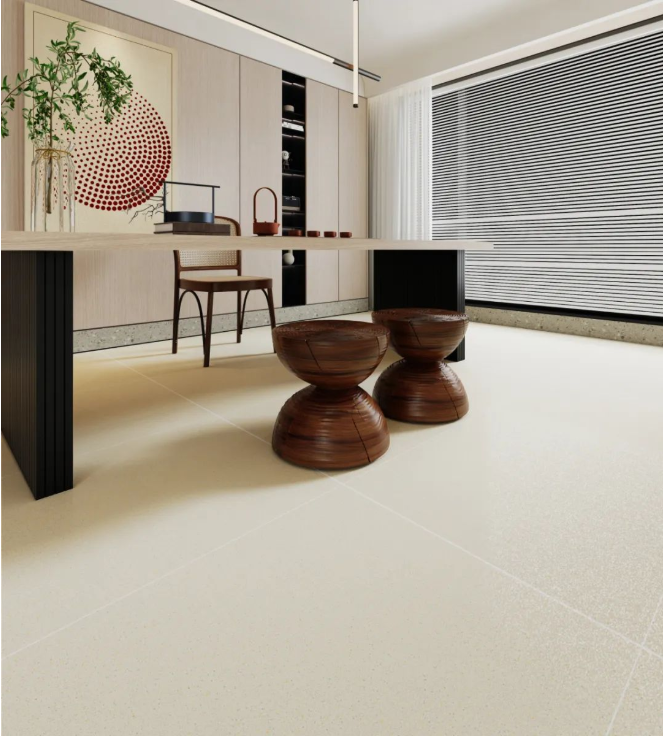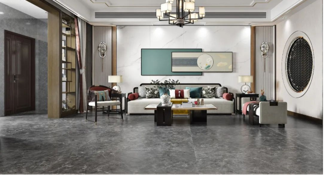以【DCSS715RP05A秋夜雨】作為地麵裝飾,深灰與細絲白紋的搭配,宛如水墨畫般韻味十足,流露出儒雅而寧靜的空間氛圍感。