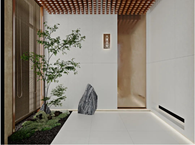 無論是木質的色彩,還是流暢的線條,中式茶室總有一種與生俱來的素雅感,賦予空間質樸之境,體現出極簡的東方禪意。