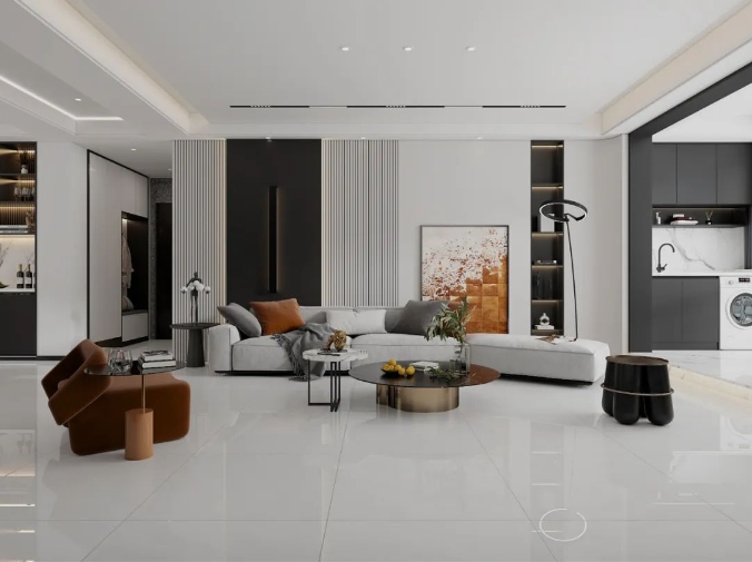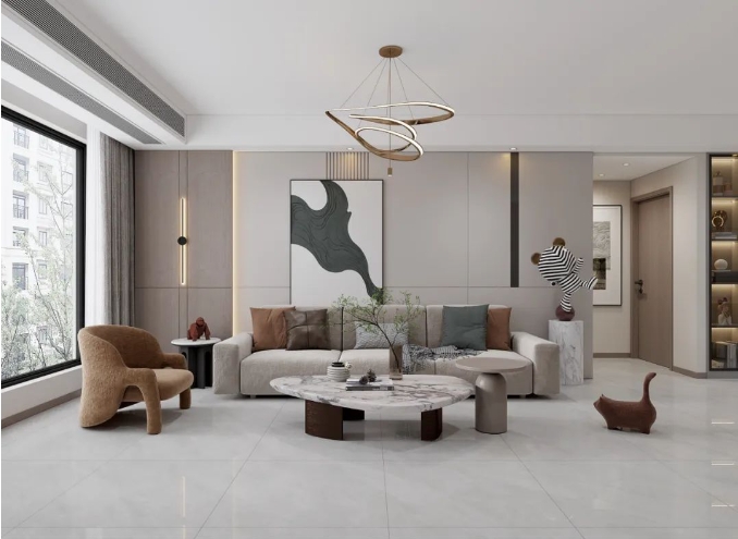 中性色是打造靜奢風的關鍵詞,是“靜”,也是“素”。以灰色、白色、大地色等瓷磚作為空間底色,以靜素色彩的演繹,讓家居整體視覺透露出低調的奢華與從容的雅致。